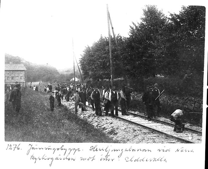 Medföljande text: "Järnvägsbygge. Herrljungabanan vid Norra kyrkogården mot öster i Uddevalla".