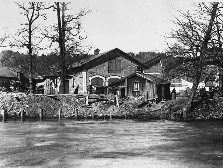 Medföljande text: "Partille sn. Jonsereds fabriker. Fabriksbebyggelse vid Säveån ca 1900? Kulturnämndens arkiv nr -75 26:48".