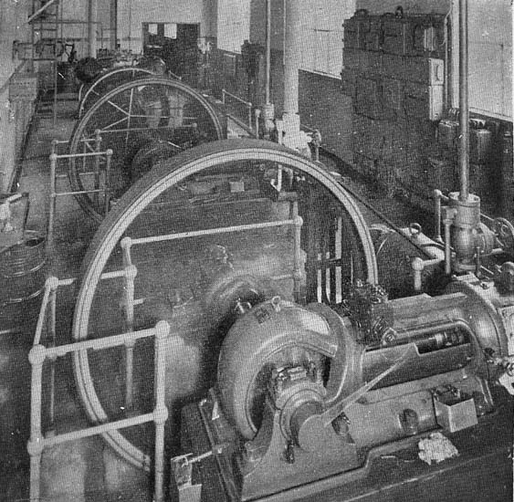 Medföljande text: "Partille sn. Hultet Ng 1:11. Isfabriken vid St. Hålsjön. Interiör av maskinhallen med kompressor. Omkring 1950. Bild från Göteborgs Is AB, Fiskhamnen".
