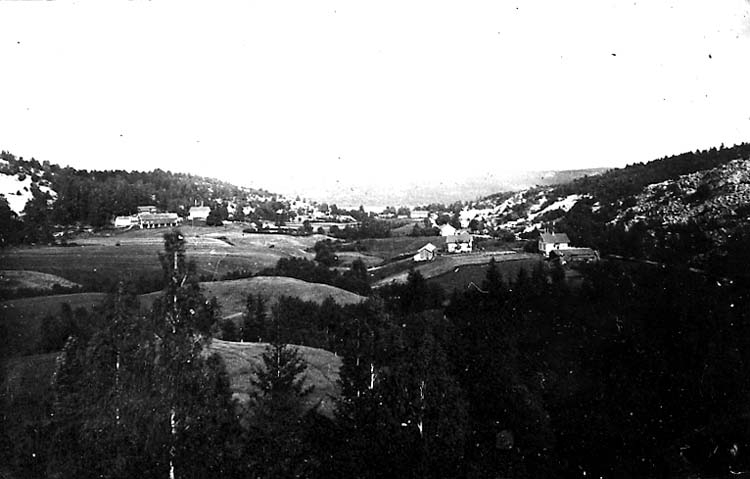 Medföljande text: "Översikt över Krokstrand, från vänster. Omkr. 1900 Repro av foto tillhörigt , S. Larsson. Dals-Rostock".