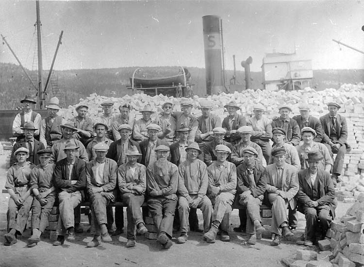 Medföljande text: "Stenlastning". Gruppbild, Norra Bohuslän, Idefjorden troligen 1920-talet".