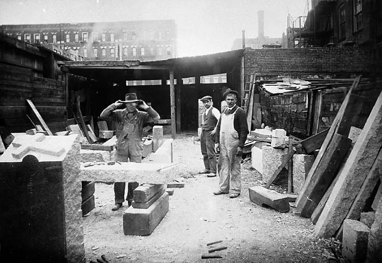 Medföljande text: "I New York" Stenhuggare från Ramsvik. 1920-talet.