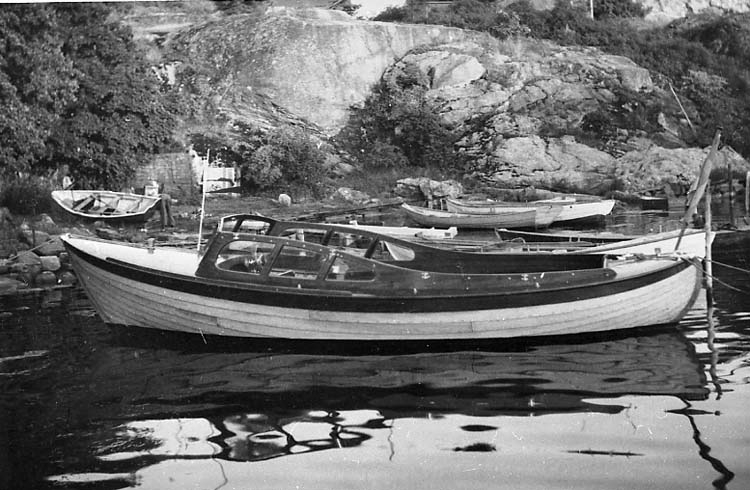 Medföljande text: "Motorsnäcka (närmast i bild) byggd på slutet av 1940-talet vid Nilssons Båtbyggeri, Strömstad. Originalfoto tillhörande Nils Nilsson, Strömstad".