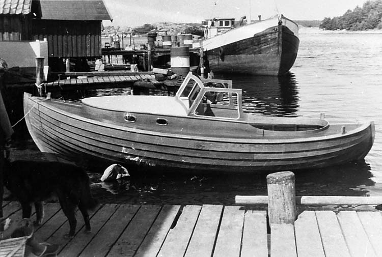 Medföljande text: "Motorsnäcka, 23 fot, byggd år 1965 av Tage Sundgren, Råssö.