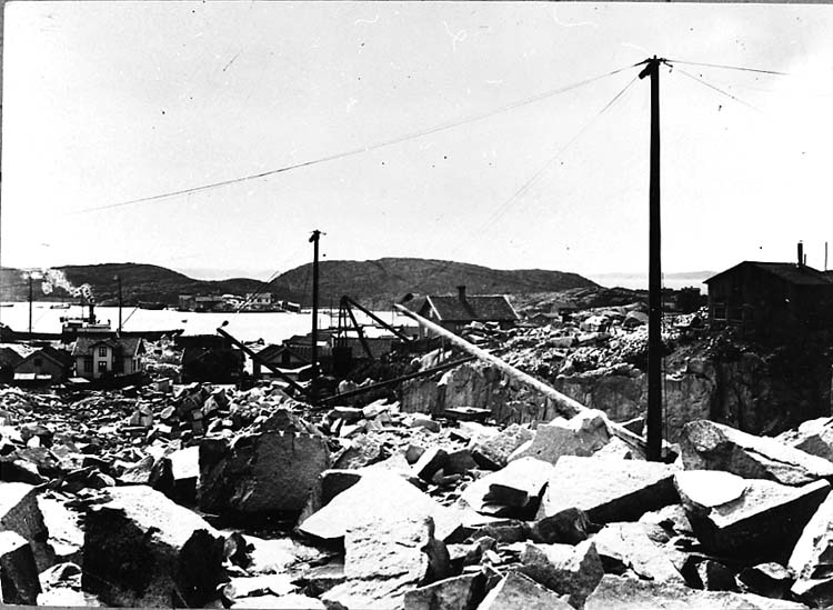 Medföljande text: "Fiskelägsbrottet. Snurran (Olofsholm) i bakgrunden omkr. sekelskiftet".