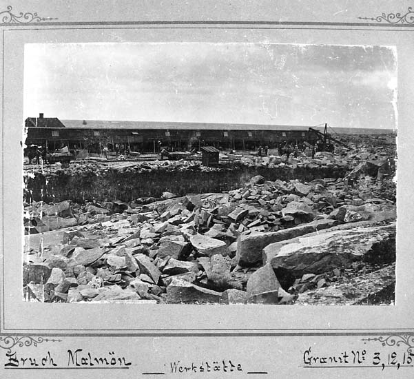 Text på kortet: "Bruch Malmön Werkstätte Granit no 3, 12, 15".