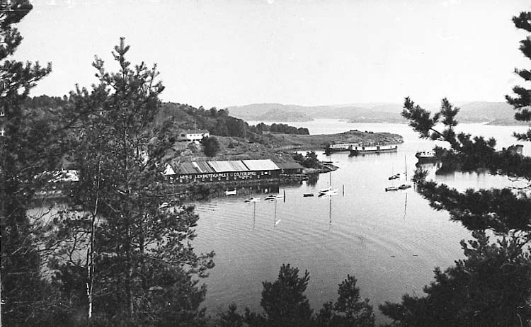 Medföljande text: "Vy över Allmags varv, Orust. Bilden tagen på 1940-, eller 1950-talet. Originalfoto tillhörande Göran Olsson, Allmag".