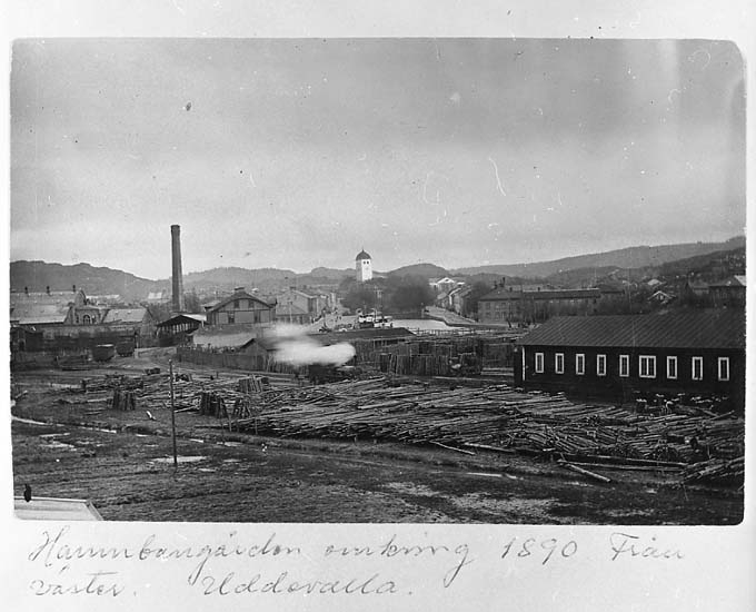 Medföljande text: "Hamnbangården omkring år 1890. UM dn 27/66 Mapp O".