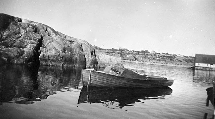 Medföljande text: "Passbåt byggd år 1937-38 vid Myrens Mekaniska Verkstad, Strömstad. Bilden tagen vid Myrens Mekaniska Verkstad, Strömstad. Originalfoto tillhörande Allan och Erik Ljungqvist, Strömstad".