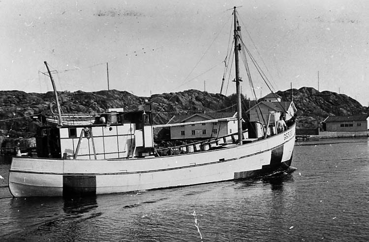 Medföljande text: "Fiskebåt "Carina", byggd år 1956 på Ringens Båtvarv i Marstrand. Båten såldes till Hönö. Originalfoto tillhörande Jean Dahlström, Marstrand".