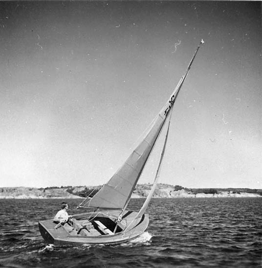 Medföljande text: "Strömstadsjulle, byggd 1943-1947 vid Myrens Mekaniska Verkstad i Strömstad. Originalfoto tillhörande Allan och Erik Ljungqvist, Strömstad".