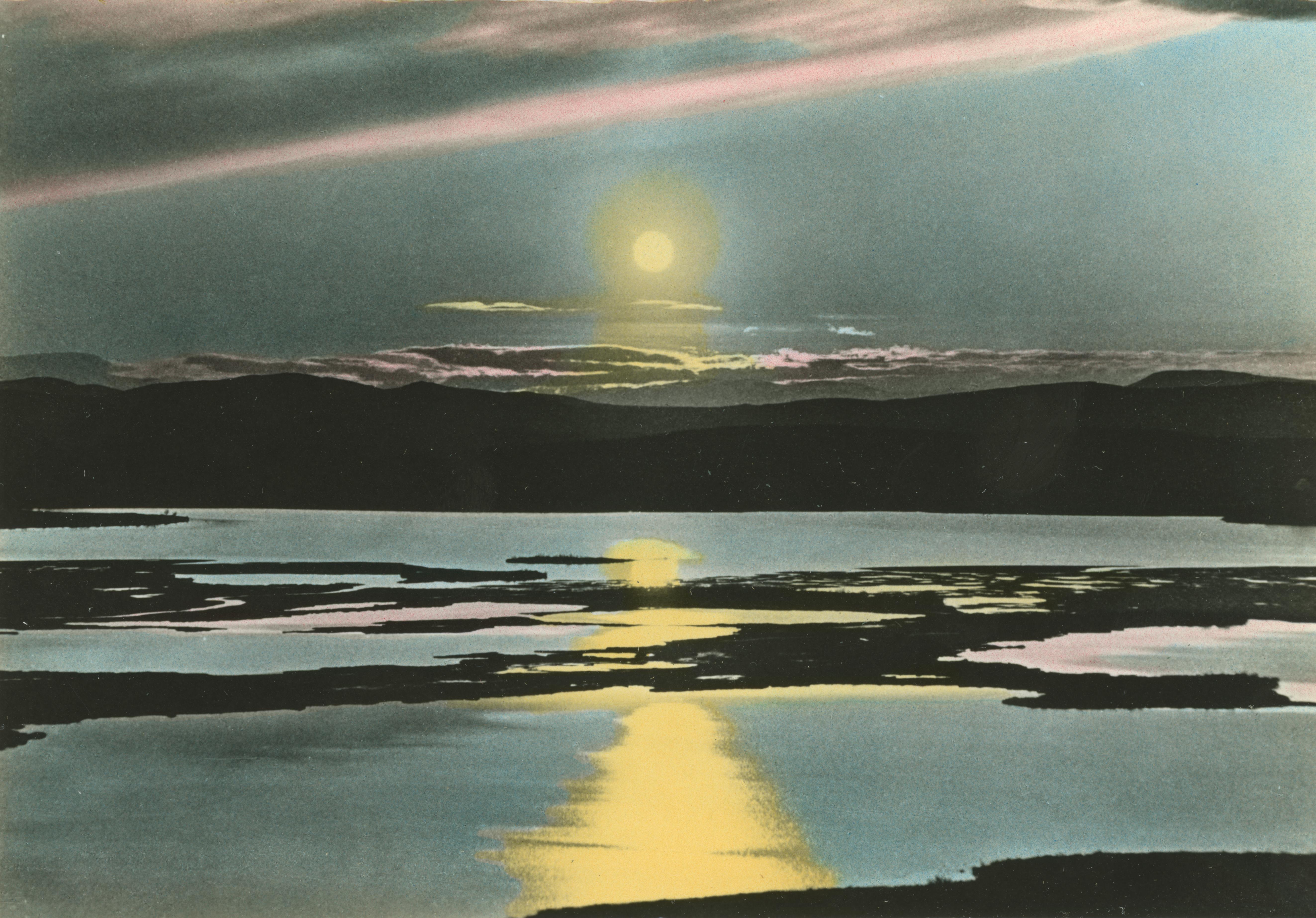 Midnattssol vid Luossajärvi. Handkolorerad variant av ac00852.