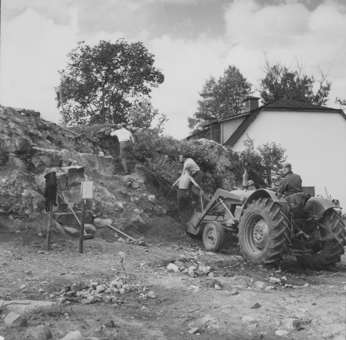 Gudsberga kloster, Husby socken. Schaktninmgsarbete på den norra murens utsida.