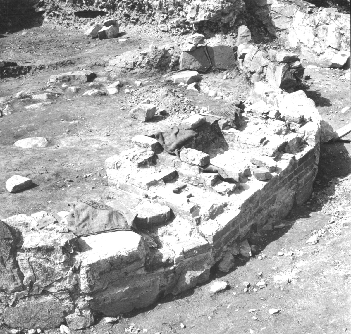 Titel: Gudsberga kloster, Husby socken. Altare uppfört av tegel helt frilagt.