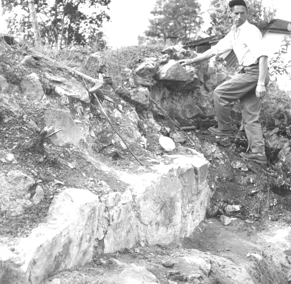 Gudsberga kloster, Husby socken. Arbete med framtagning av den norra murens utsida. Raä:s ombud i Säter och St. Skedvi Carl Erik Erikson.