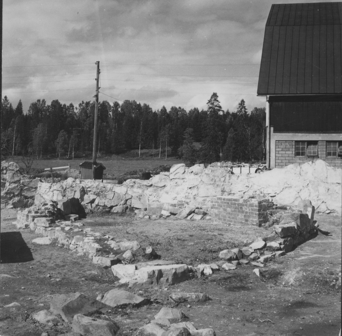 Gudsberga kloster, Husby socken. Korpartiet med altaret och norra delen av muren i koromgången.