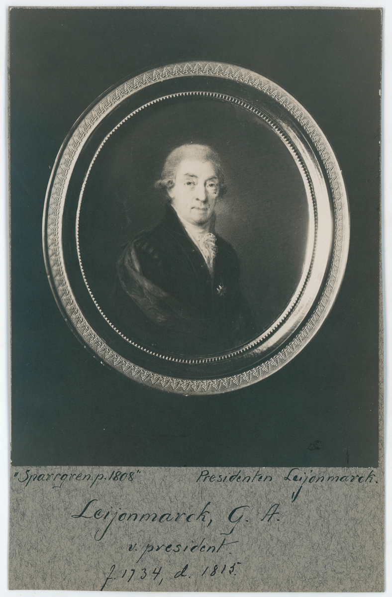 Titel: Porträtt på Gustaf Adolph Leyonmarck (ätten Leijonmarck) född år 1734 och död år 1815. En svensk ämbetsman.