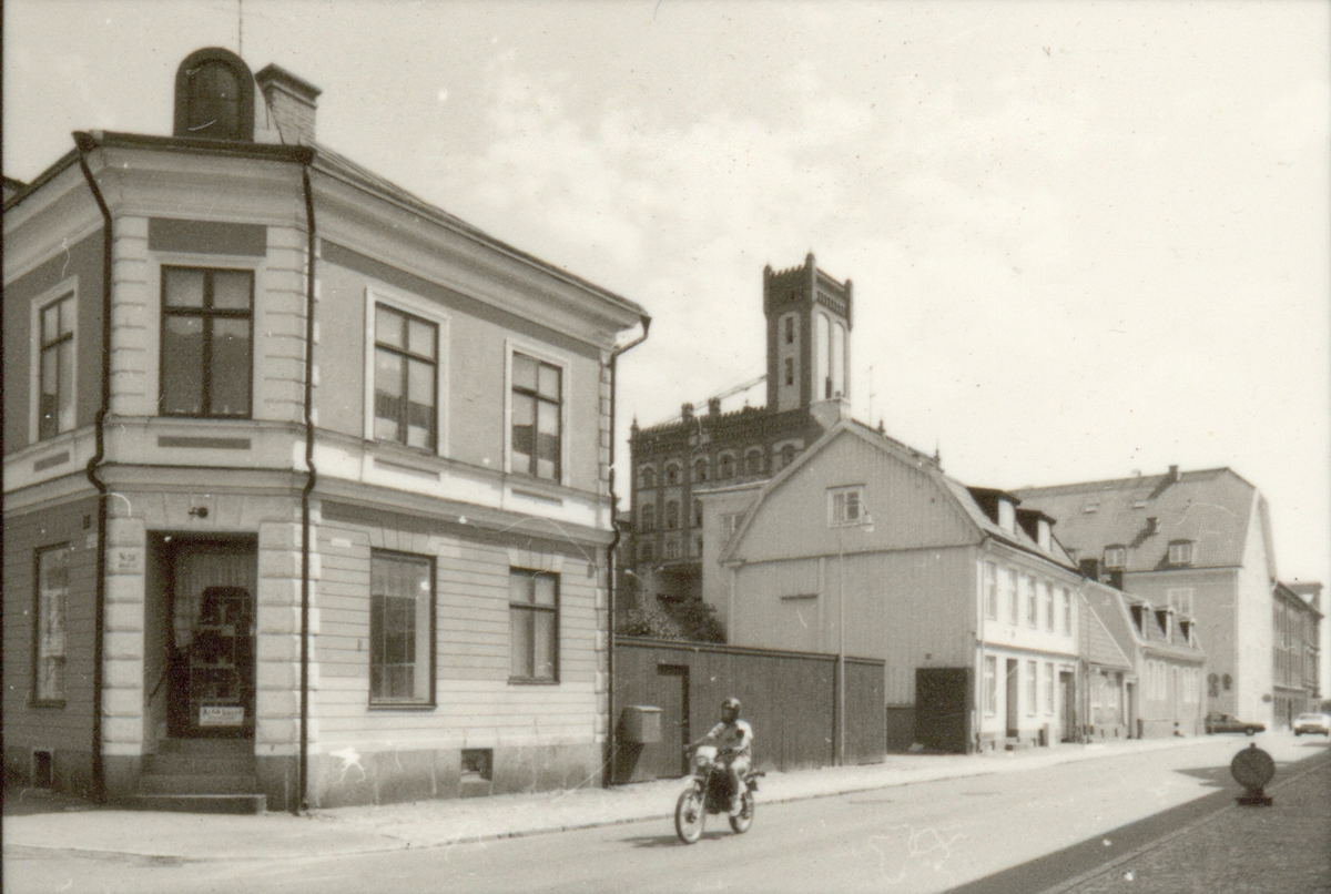 Butik med gavelentré i hörnet Storgatan-Proviantgatan.