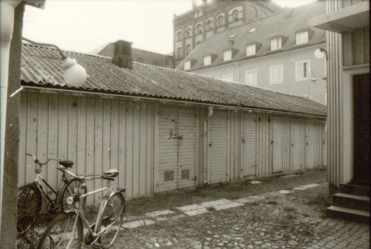 Titel: Gårdsmiljö kv Bagaren uthus med förråd.