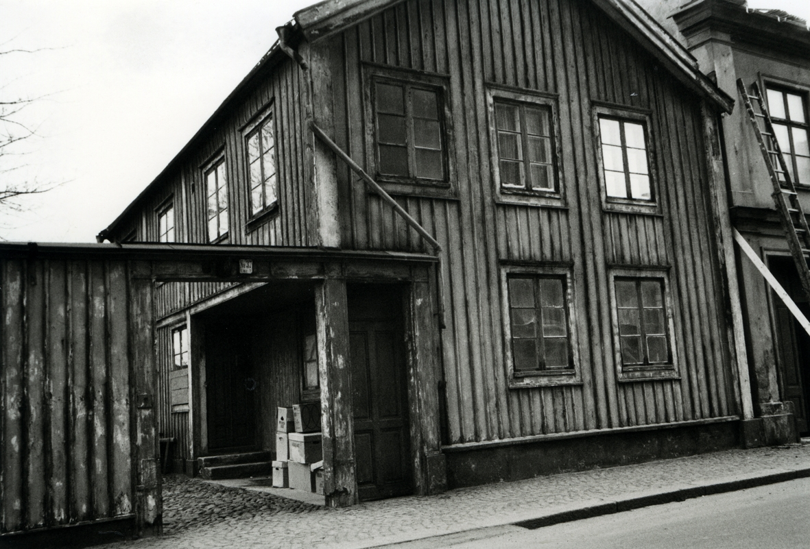 Ett bostadshus med lockläcktpanel på Norra Långgatan.