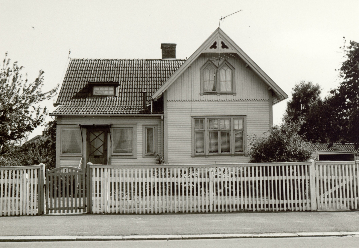 Ett bostadshus med staket till tomten på Långviksvägen 7 i Kalmar.