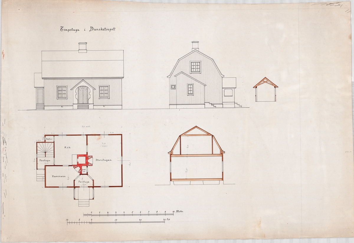 Titel: Kolorerad arkitektritning av Hugo Hammarskjöld. Projekt: Dansketorpet, Tuna gård. Utan årtal.