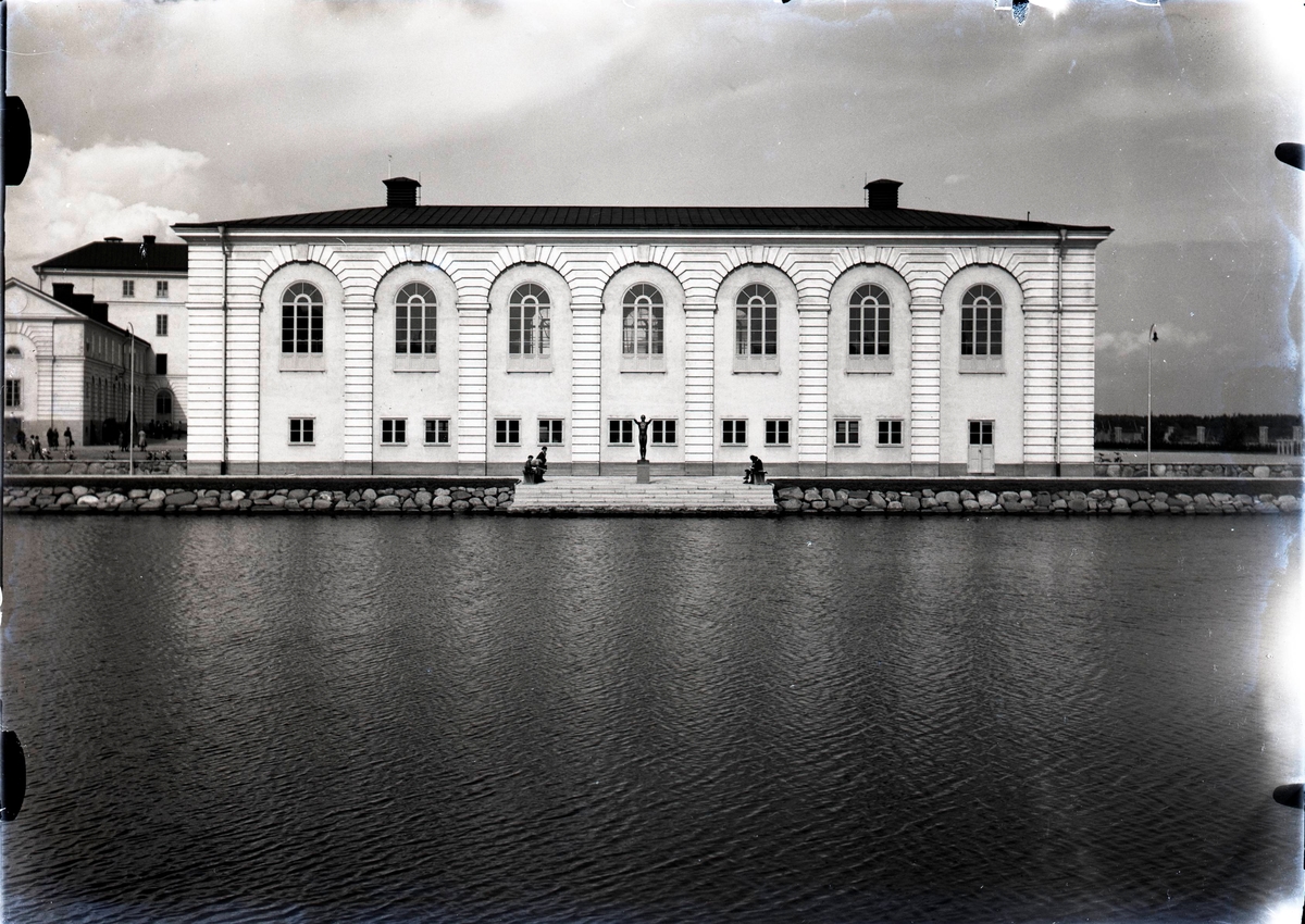 Stagneliusskolans gymnastiksal med skulpturen Simhopparen av Carl Eldh vid Stagneliusskolan.