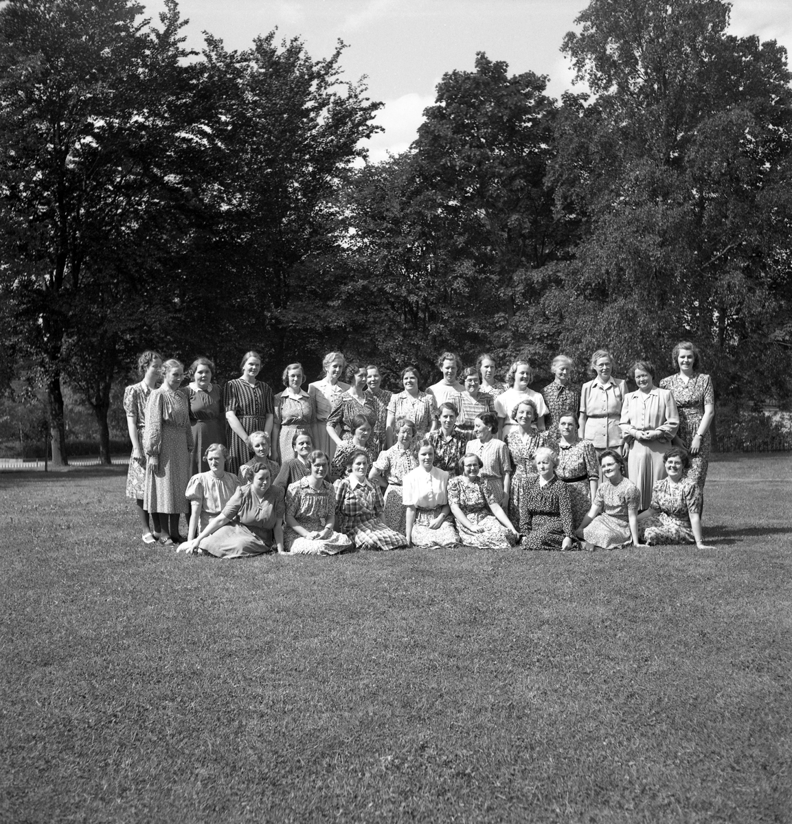 Ett antal damer har ställt upp för fotografering på en gräsmatta utanför Blindskolan.