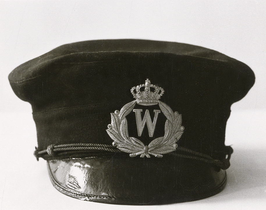 Polismössa för poliskonstapel, med mössmärke i form av W (Wexiö) under krona, ca 1920-25.