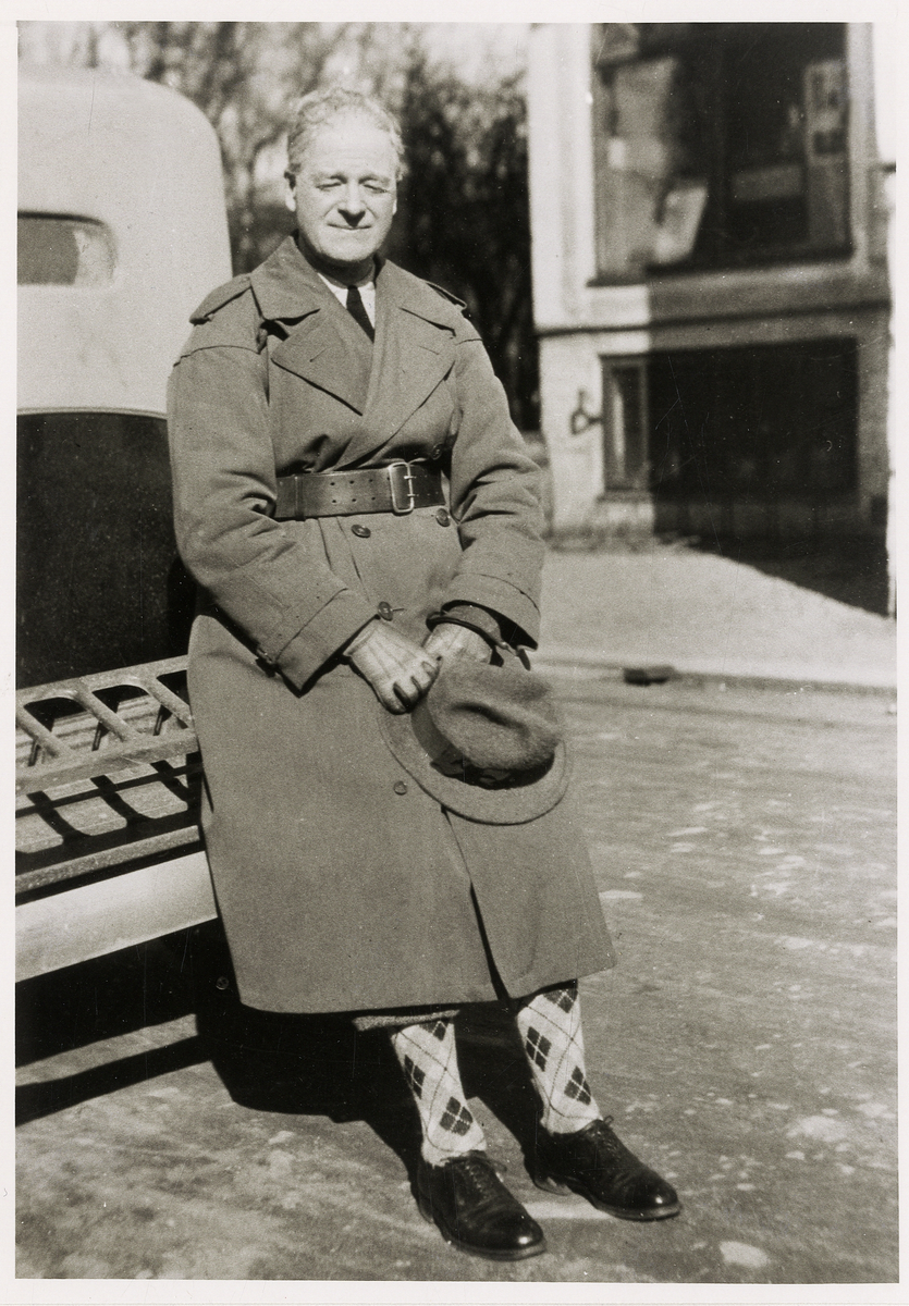 Landsfiskal Sigge Kirsten, Älmhult, sitter på baksidan av en bil under en paus i arbetet.