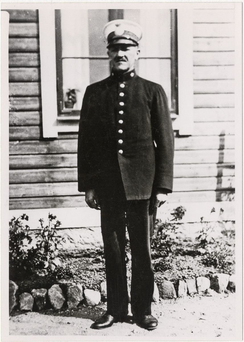 Poliskonstapel Per Ohlssoni en trädgård någonstans i Alvesta ca 1930.