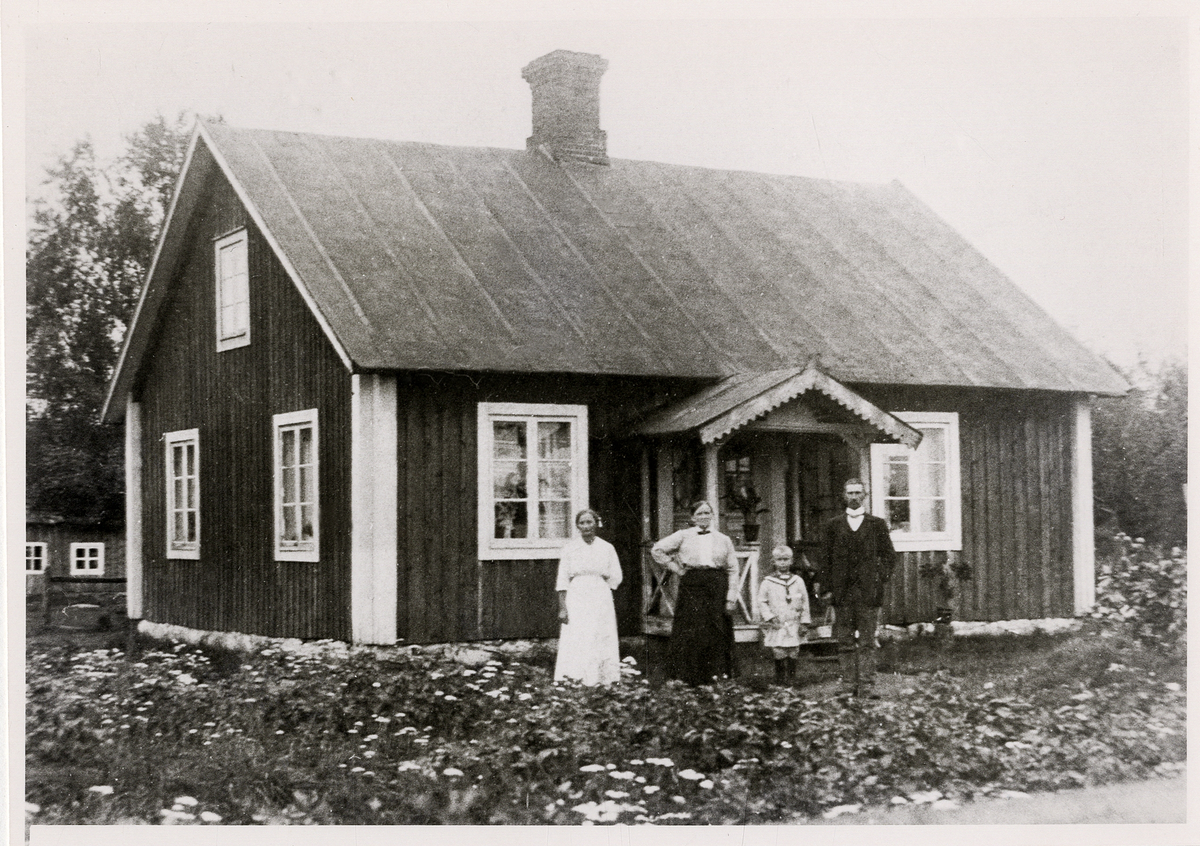 Fjärdingsman Axel Spång, Vislanda, med familj, ca 1914, utanför familjens bostad, Hullingsved Södratorp.