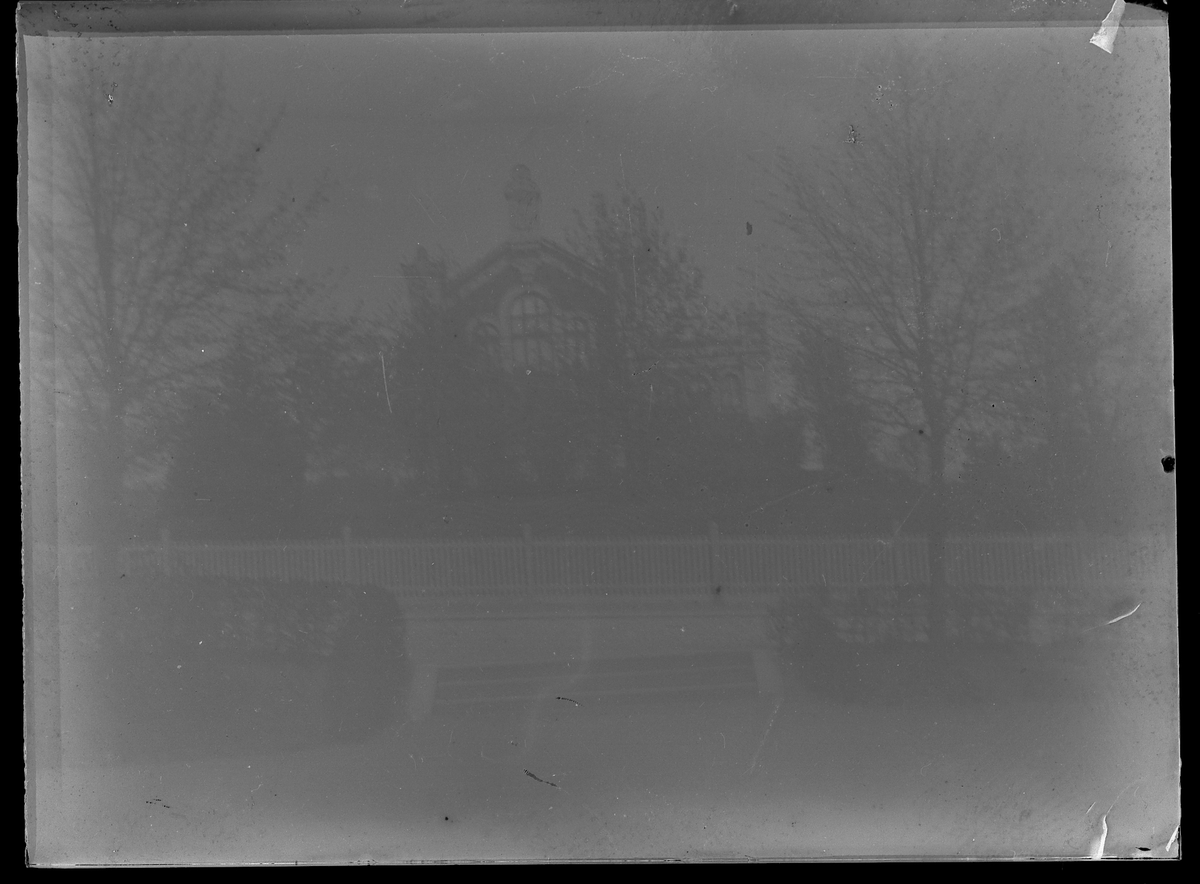 Vy av dåv. huvudbyggnaden till Smålands museum. Fotot taget från skolgården till dåv. Växjö Högre Allmänna Läroverk.