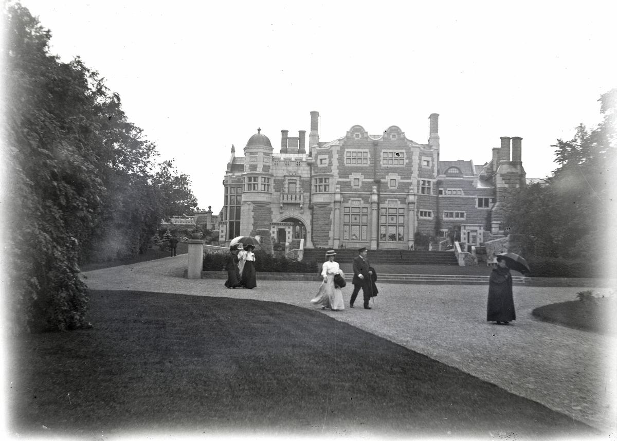 Det nybyggda Tjolöholms slott i regntungt väder (uppfört av familjen James Frederick Dickson 1897-1904) .