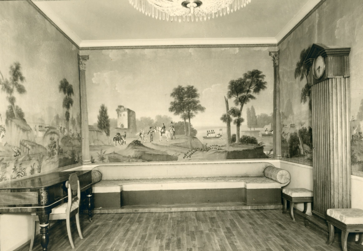 Gävle Museum: Brynässalongen. Målade franska tapeter samt möbler från omkring 1830.