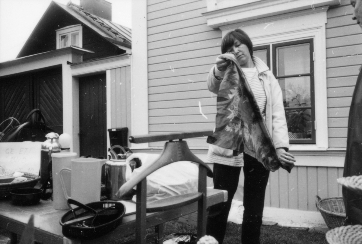 Auktion på ”Snusmajas tomt” i Gävle 23/9 1984, arrangerad av Miljöpartiet i Gävle.