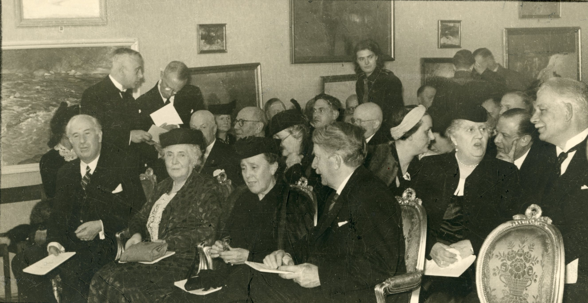 Bild tagen vid invigningen av Gävle Museum den 29 september 1940. Främre raden fr.v. riksantikvarie Sigurd Curman, friherrinnan Sophie Louise von Plessen (syster till Antonie Rettig), Köpenhamn, fru Anna von Rettig, Åbo överintentdenten vid Nationalmuseum Axel Gauffin.