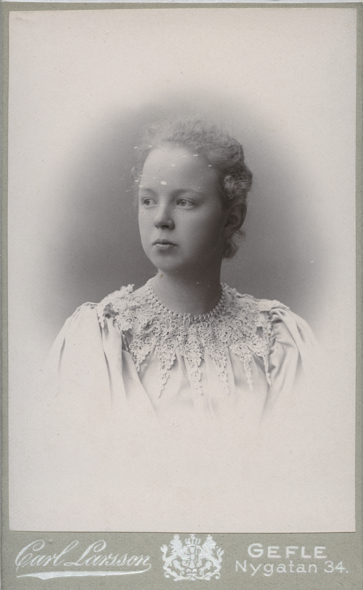 Porträtt av Valborg Goldschmidt född Schoch, 1895 (enligt text baksida kort).