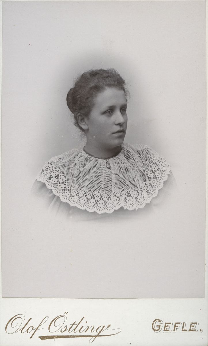 Porträtt av Lydia Löfgren, hösten 1895 (enligt text baksida kort).