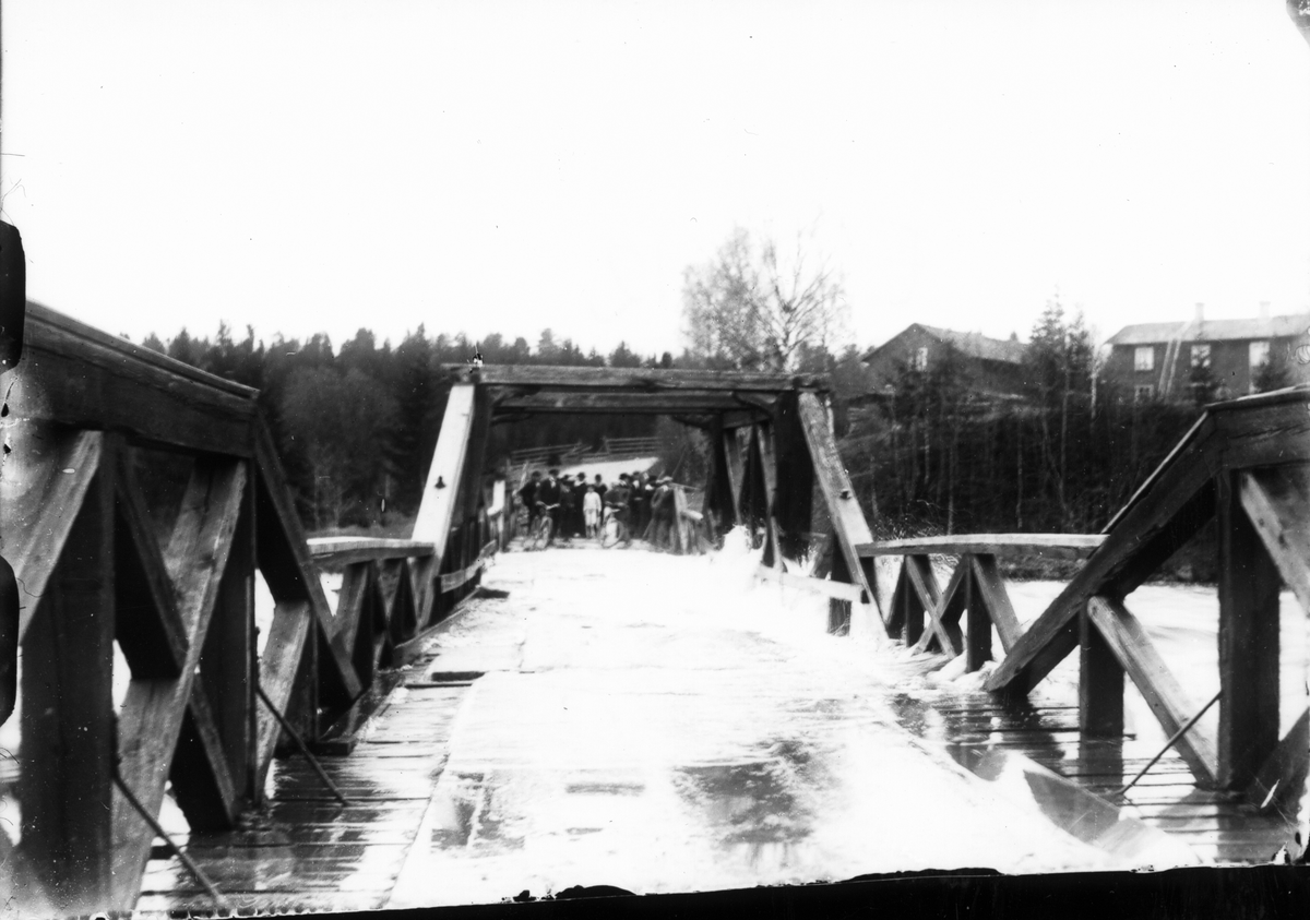 Dåvarande landsvägsbron i Sunnerstaholm överspolad. Foto: 1916.