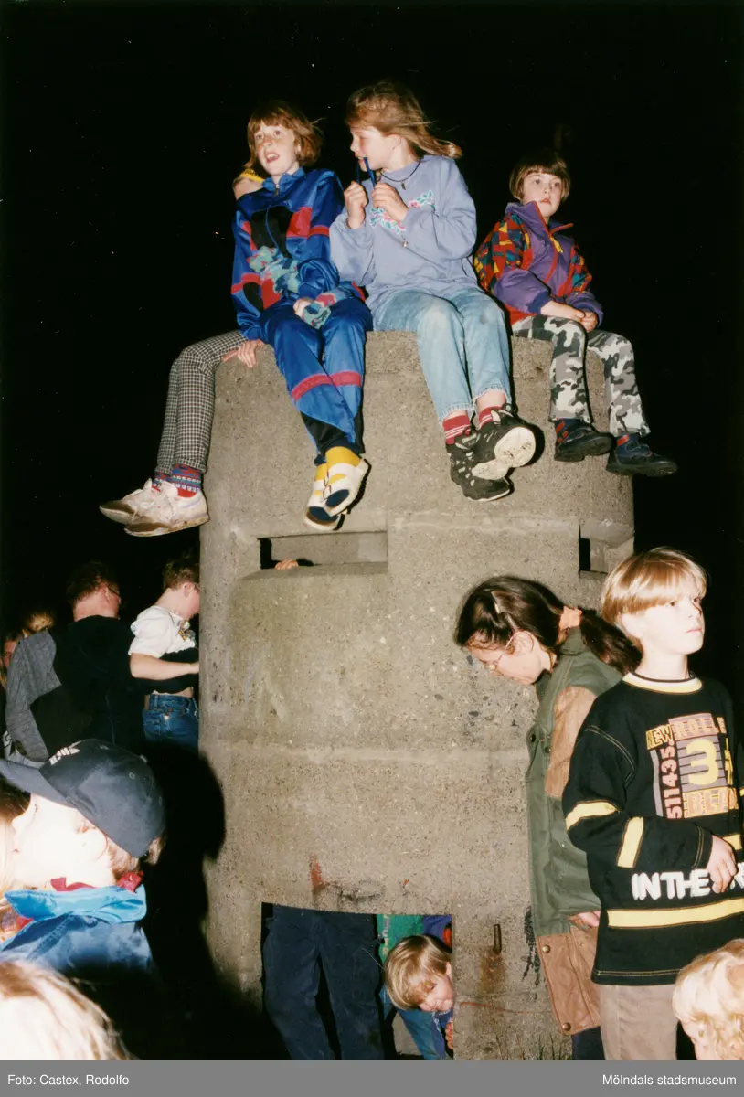Firande på Störtfjället i Mölndal under valborgsmässoaftonen den 30 april 1998. Ungdomar vid bevakningstornet.