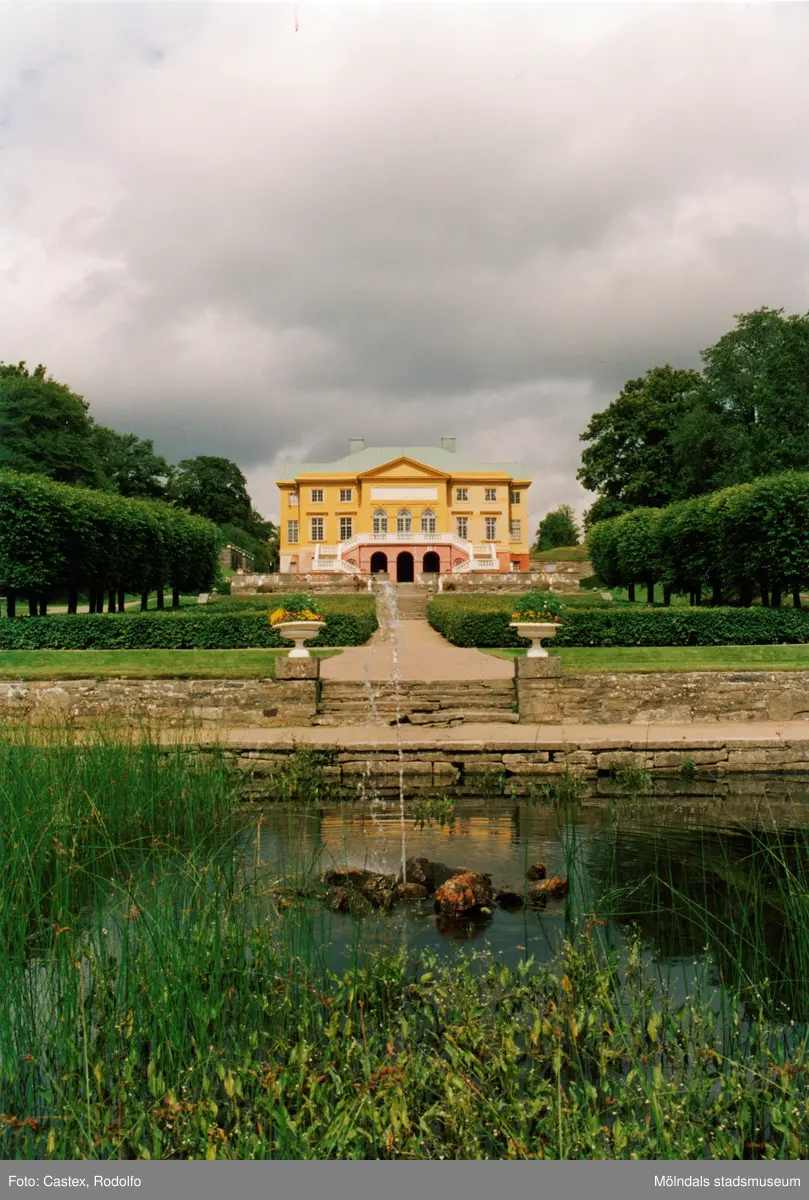 Titel: Gunnebo slott och slottsparken. Mölndal, år 1994. Fasaden som vetter åt söder.