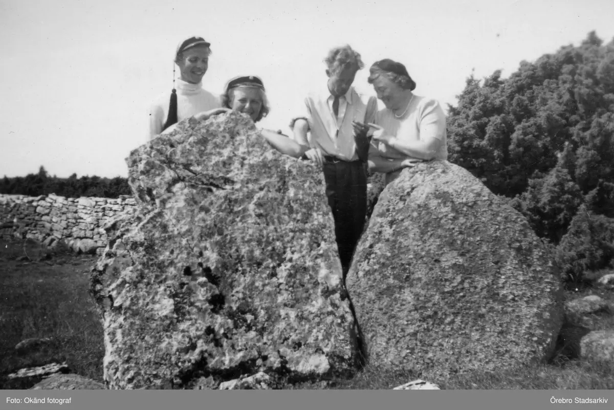 Fyra vänner gömmer sig bakom stora stenar, 1951