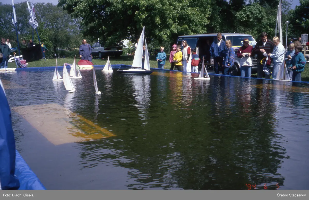 Tävling för radiostyrda modellsegelbåtar i bassäng på Båtens dag, 1994-06-03