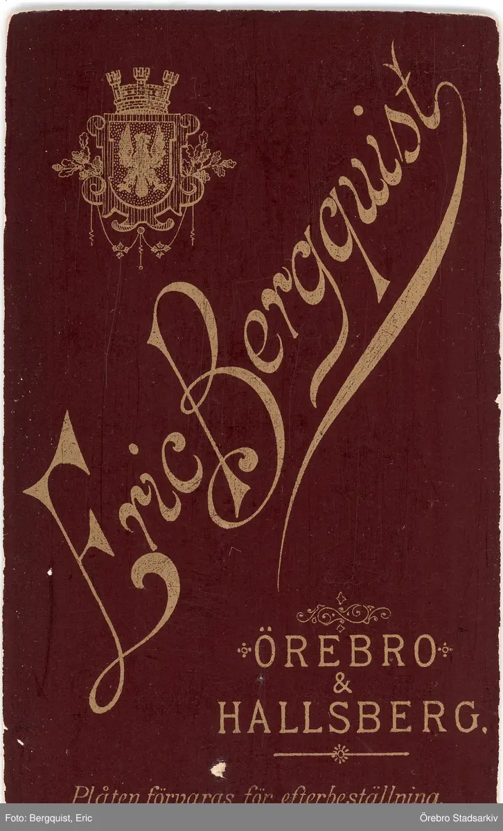 Baksida till visitkort från Eric Bergquist, efter 1890
