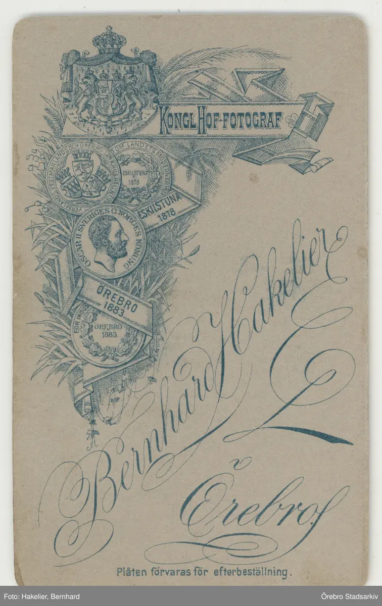 Baksida till visitkort från Bernhard Hakelier, efter 1883