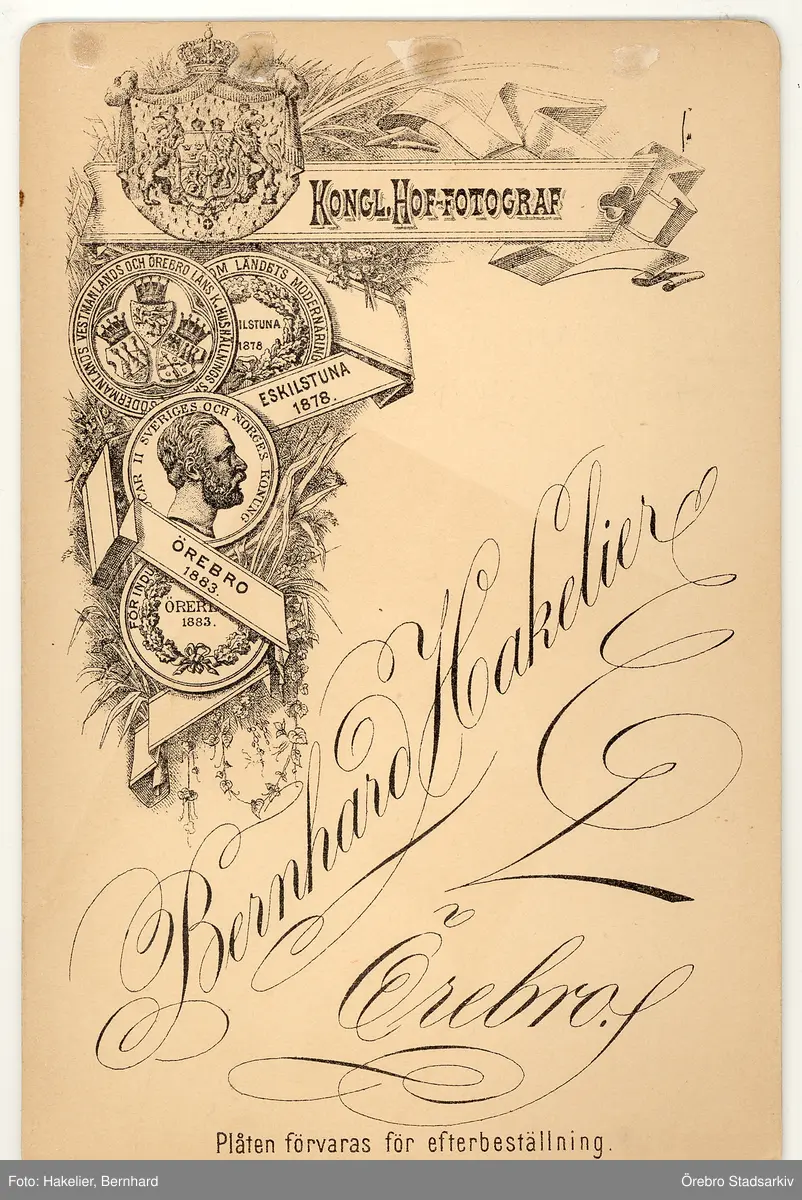 Baksida till visitkort från Bernhard Hakelier, 1883