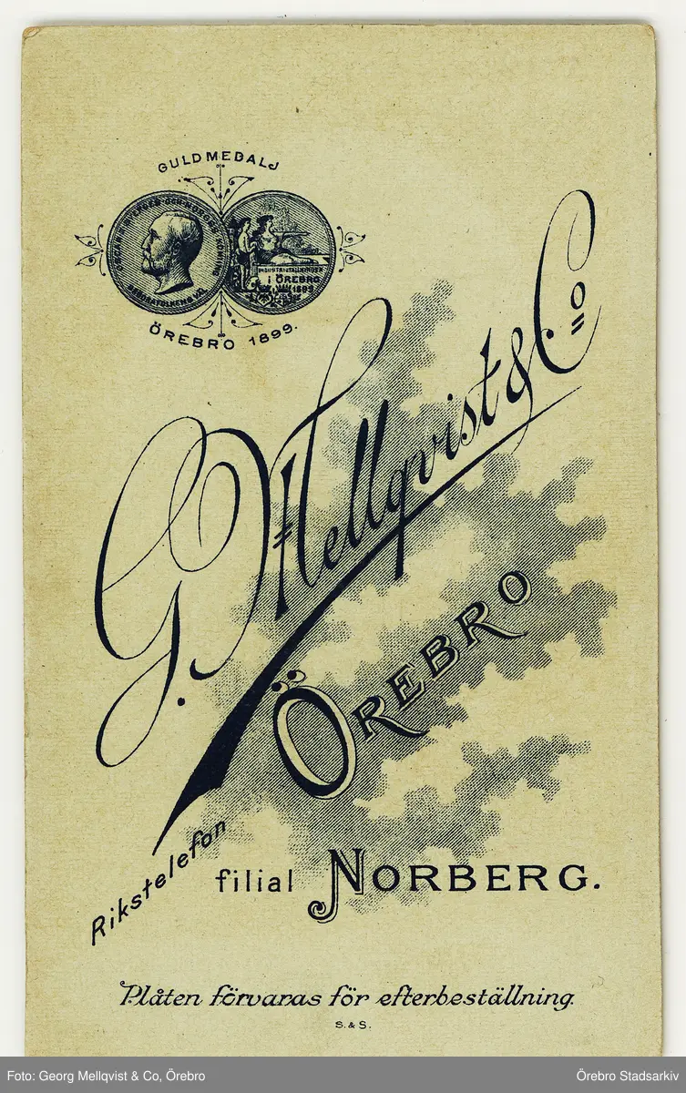 Baksida till visitkort från G. Mellqvist & co, efter 1899