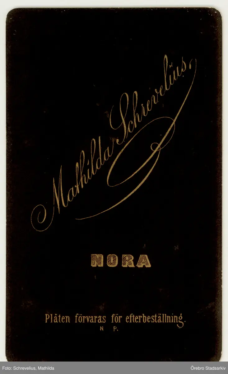 Baksida till visitkort från Mathilda Schrevelius, före 1920