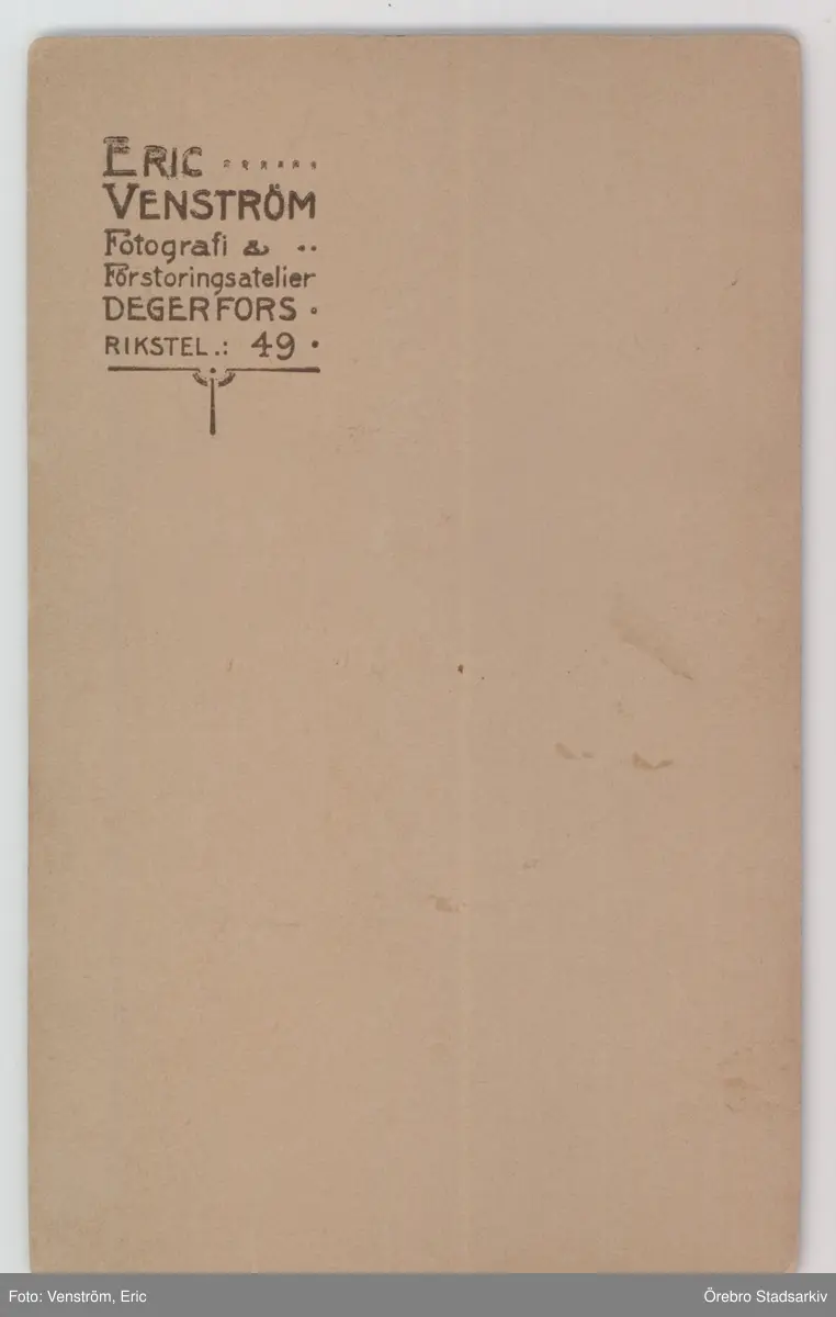 Baksida till visitkort från Eric Venström, 1920